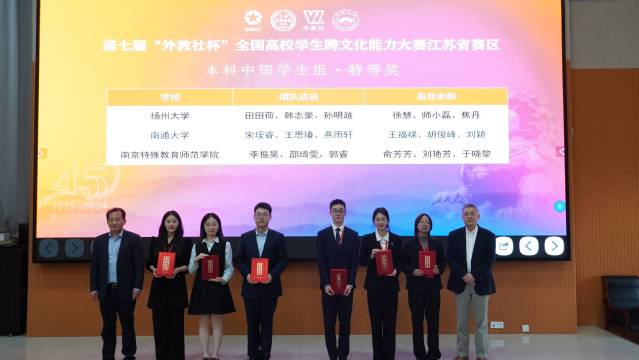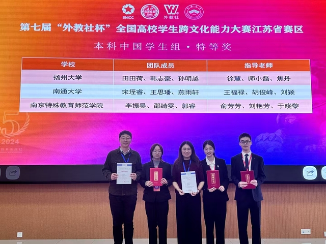 11月1-3日,第七届“外教社杯”全国高校学生跨文化能力大赛江苏省赛区比赛于在我校举办。在此次大赛中,小奶猫直播 商务英语专业宋垤睿、教育科学学院小教语文(定向)专业王思璠、商学院(管理学院)工商管理专业燕雨轩三位同学代表小奶猫直播 出战,经过两轮激烈的角逐,荣获江苏省赛区特等奖。我校留学生SATHINI NAMANIWAN、HOANG THI PHUONG ANH、NGUYEN THI THU获国际学生组二等奖。
