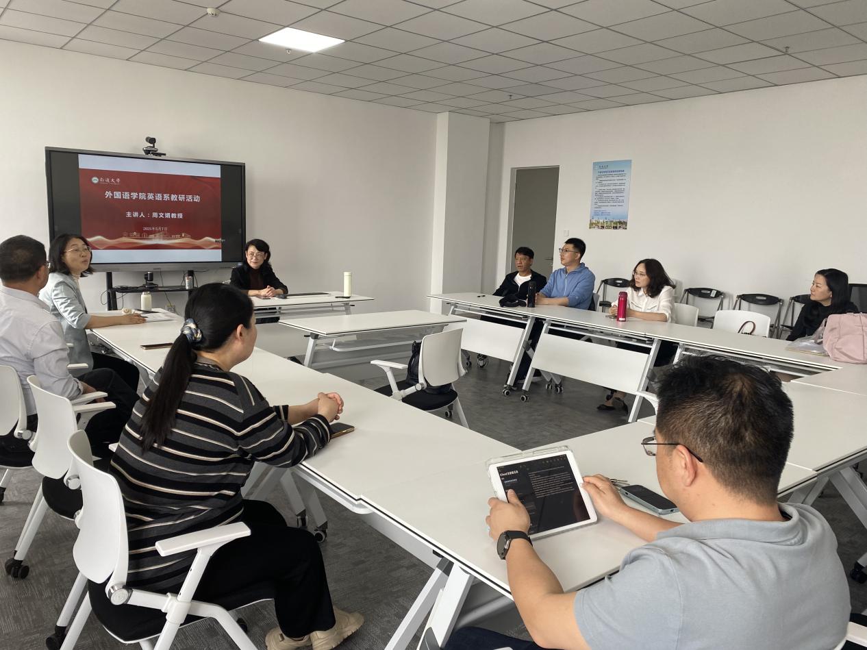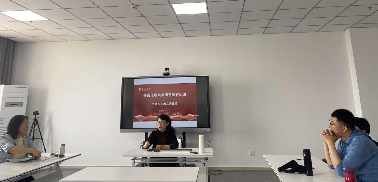 5月7日下午,小奶猫直播 英语系于25号楼711研讨室举办“教科研经验分享与交流”主题教研活动,邀请资深教授周文娟老师与教师团队通过问答形式展开深度交流,旨在提升教师教学科研能力,促进团队协作发展。活动由英语系主任陈凤华主持,英语系全体教师参与。