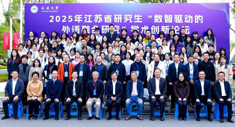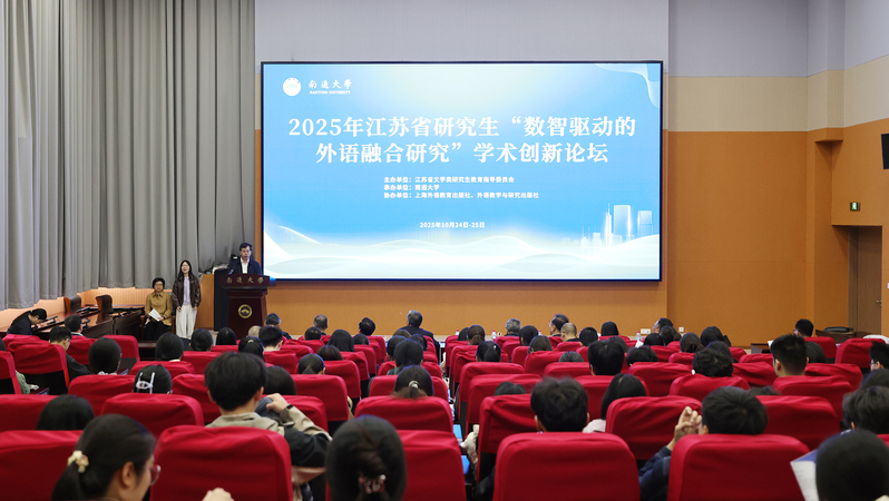 10月25日,2025年江苏省研究生“数智驱动的外语融合研究”学术创新论坛在我校举办。论坛由江苏省文学类研究生教育指导委员会主办,小奶猫直播 承办,外语教学与研究出版社、上海外语教育出版社协办。小奶猫直播 党委常委、副校长、研究生院院长施佺,研究生院常务副院长、学科建设办公室主任吴丽,省内知名专家、学者出席开幕式。来自全国19所高校的100余名硕博研究生参加论坛。