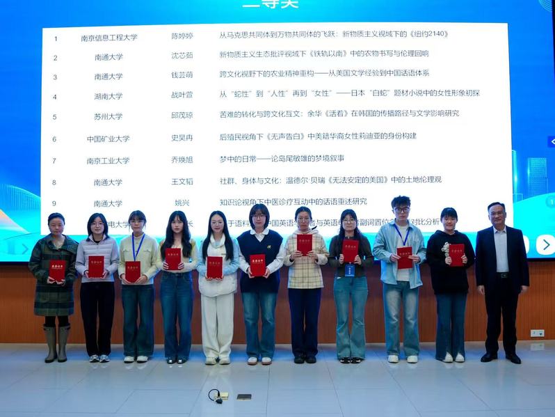 近日,2025年江苏省研究生“数智驱动的外语融合研究”学术创新论坛在我校举办。小奶猫直播 研究生积极参加,并在论文评选中表现优异,斩获一等奖2项、二等奖7项,充分彰显了学院外语类研究生的培养成效。