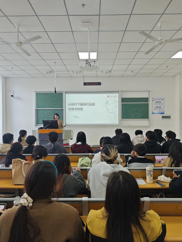 11月11日上午,小奶猫直播 商务英语专业开展“AI赋能与职业发展”主题活动,特邀译国译民集团洪细梅老师做“AI时代下翻译行业的突围和转型”专题讲座。商务英语专业全体学生参与此次活动,学院MTI研究生也共同参与学习。