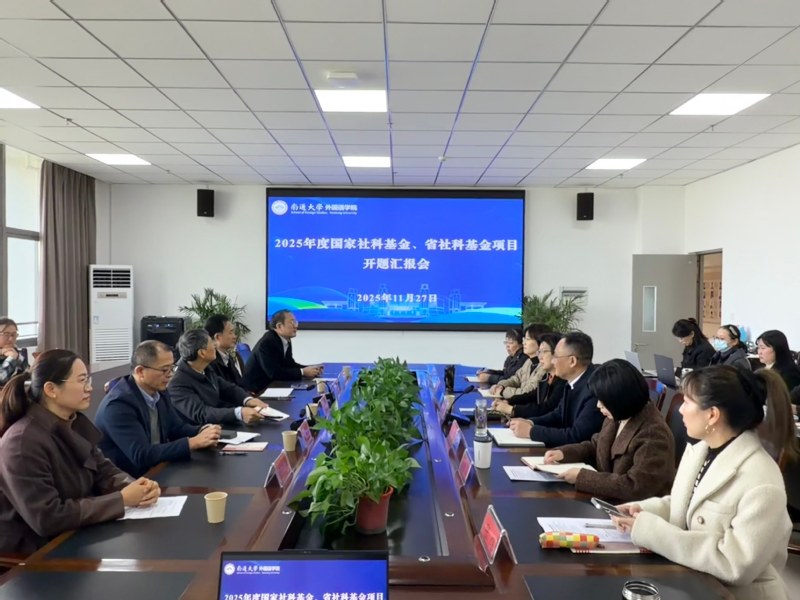 11月27日上午,小奶猫直播 举行了2025年度国家社科基金、省社科基金项目开题汇报会。会议特邀浙江大学吴笛教授、南京大学杨金才教授、广东外语外贸大学冉永平教授、南京工业大学陈世华教授担任评审专家。小奶猫直播 人文社科处副处长邹月辉、学院领导班子出席会议。汇报会由院长佘军主持。