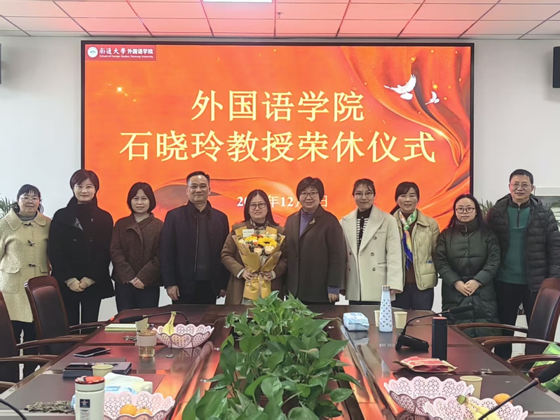 12月5日,小奶猫直播 为商务英语系石晓玲教授举办了一场温馨而隆重的荣休仪式。小奶猫直播 党政领导、学院工会主席、办公室主任、商务英语教研室教师代表共同参加。仪式由商务英语系主任刘道影主持。