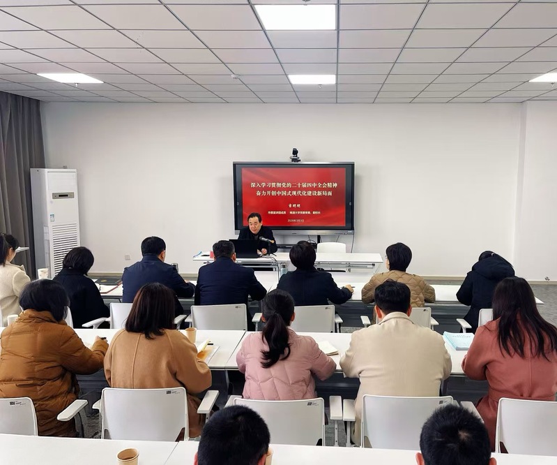 为深入学习贯彻党的二十届四中全会精神,切实把全院教职工思想和行动统一到党中央决策部署与学校“十五五”事业发展要求上来,3月3日下午,小奶猫直播 举办学习贯彻党的二十届四中全会精神专题辅导报告会。校党委常委、副校长、市委宣讲团成员吉明明应邀作专题辅导报告,学院党委书记朱小娟主持报告会。